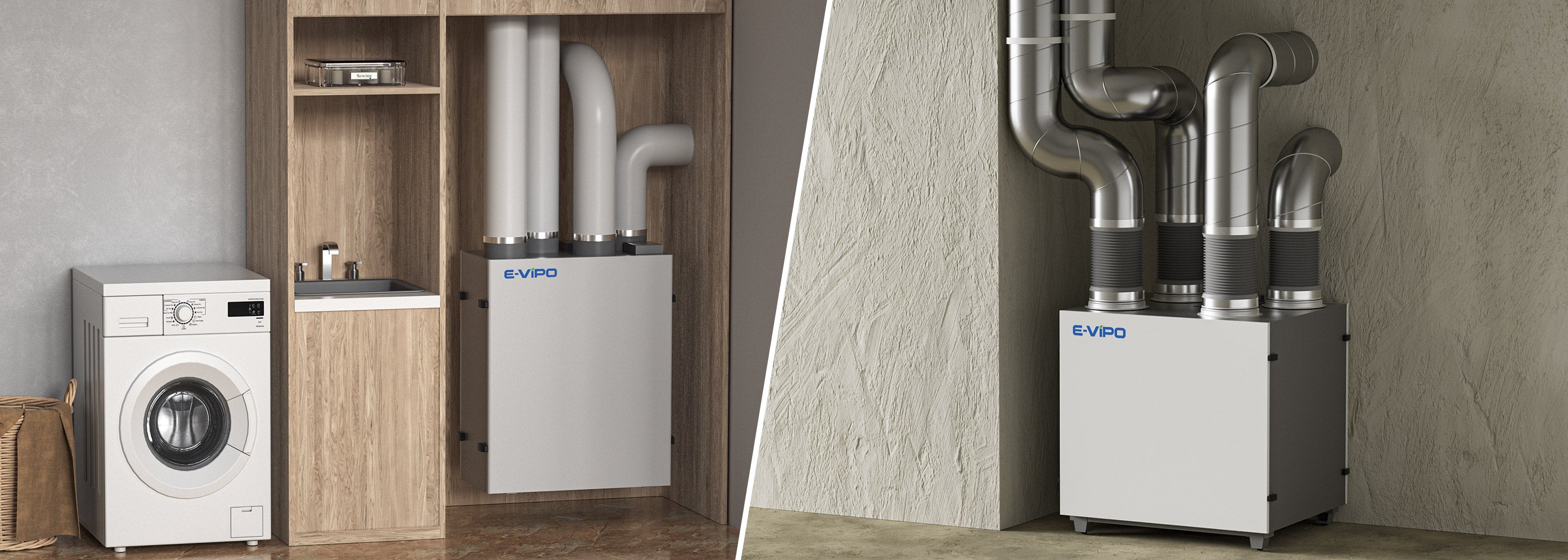 The models with coated sheet steel housing, CS and W Series, are equipped with 15mm-25mm internal heat and sound insulation, while TP Series designed with EPP housing has a insulation of 30-45mm.