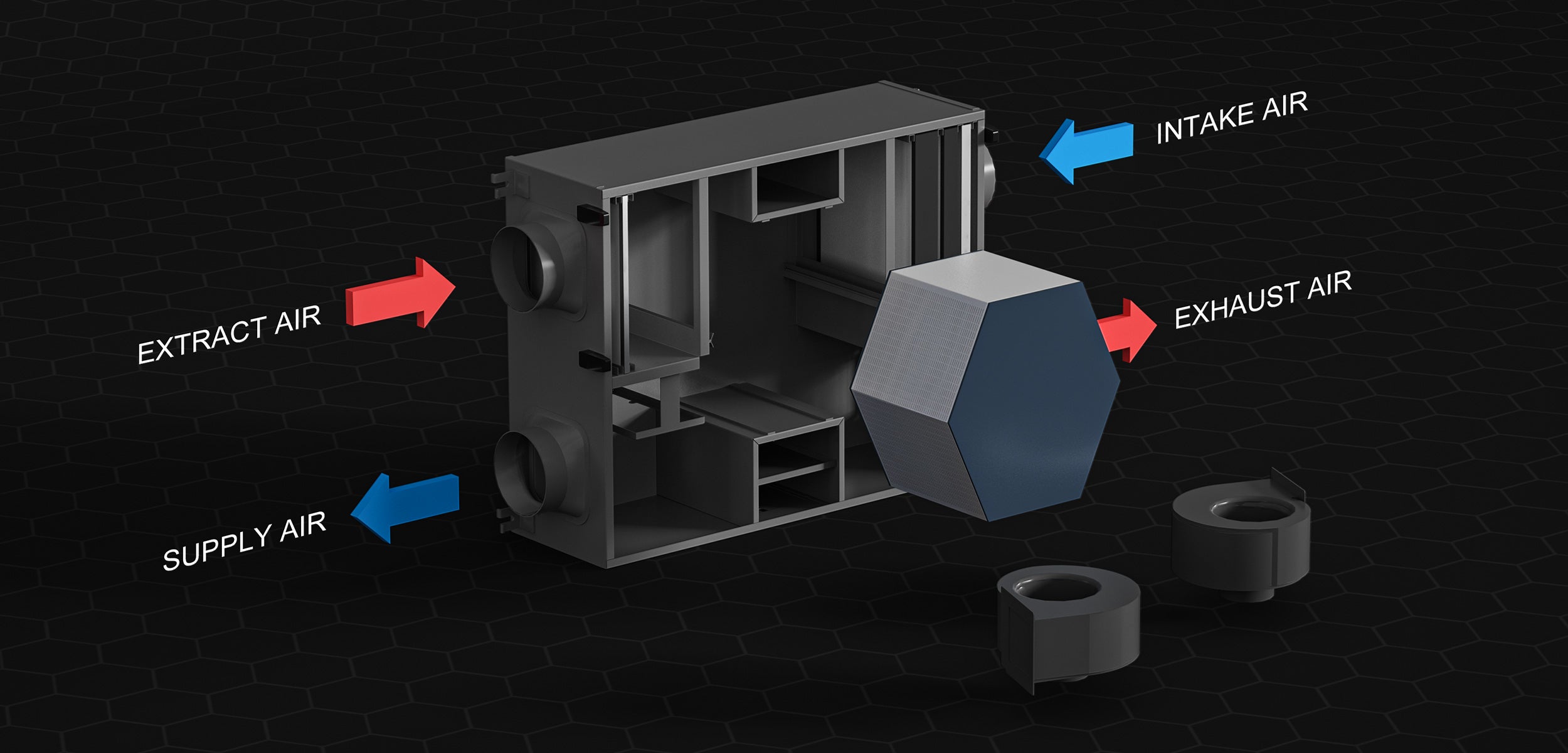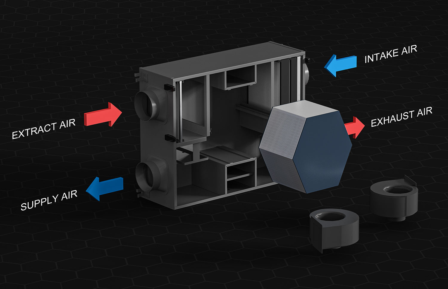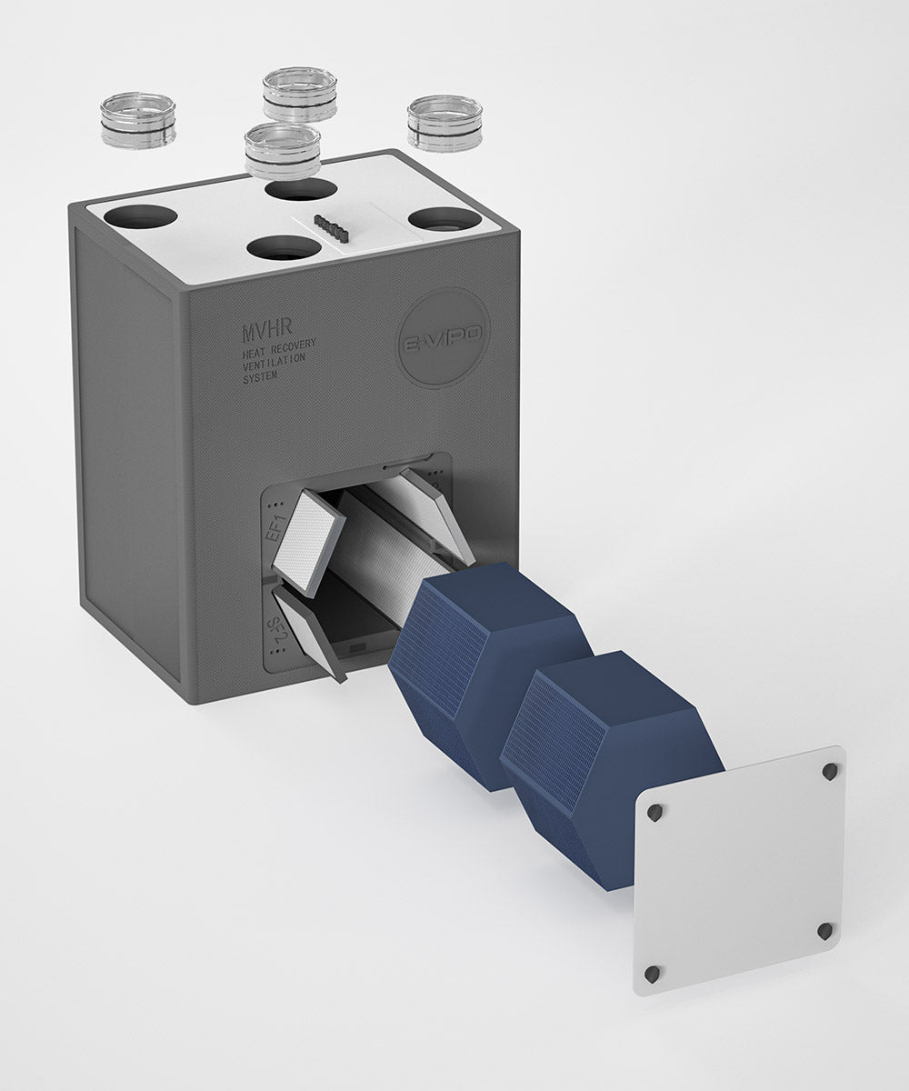 EPP has properties of light weight, heat and sound insulation. With a full EPP housing and structure from internal to external, the unit has an internal insulation of 30-45mm, which enhances the heat and sound insulation level. Counter-flow heat recovery cores, high static pressure and ultra silent EC motors, built-in bypass system, class G4 and F8 filters are some of the main configurations of the product.